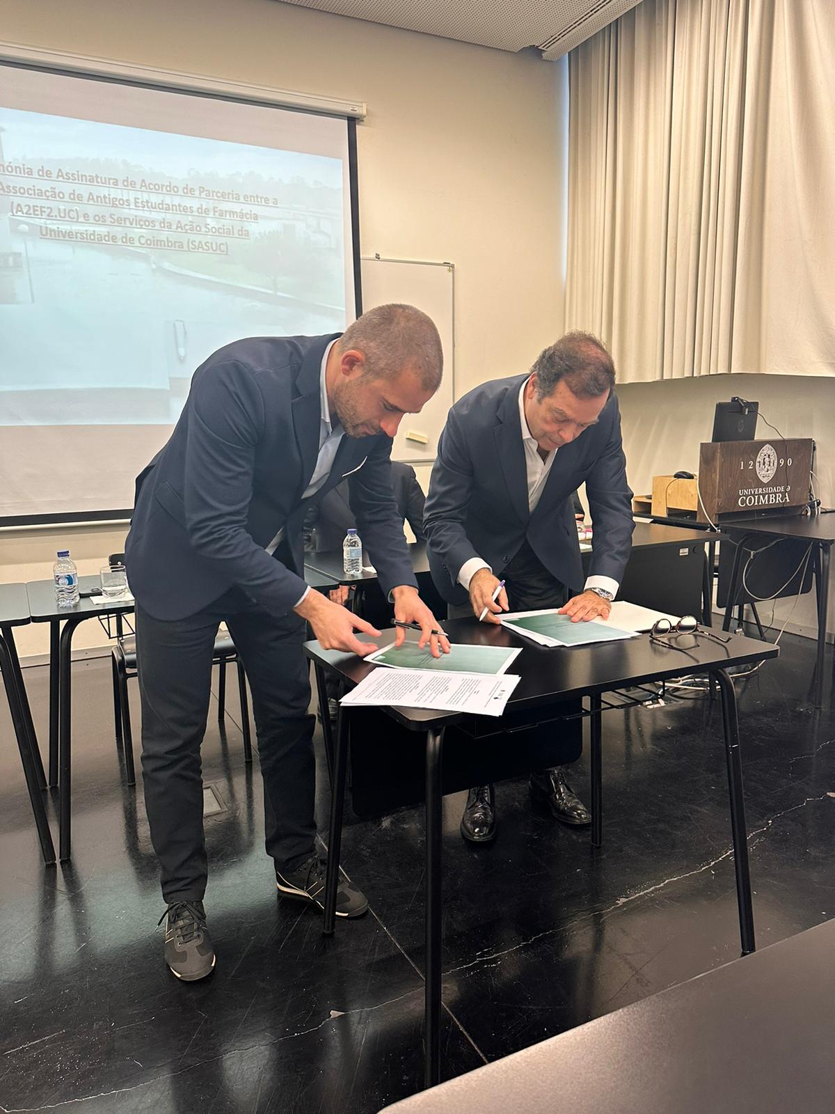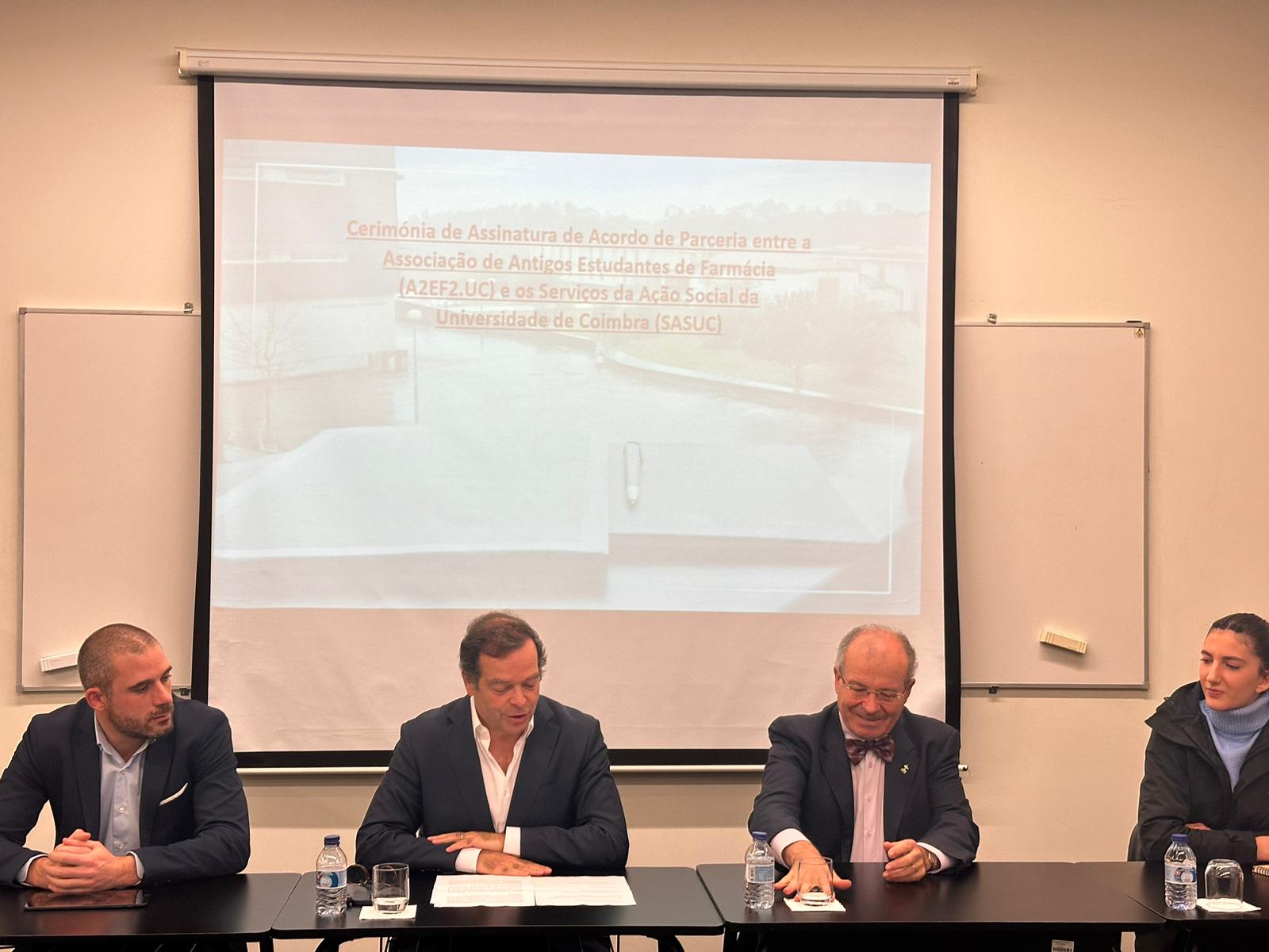 A a2ef2.uc assinou, no passado dia 12 de dezembro, um protocolo com os Serviços de Ação Social da Universidade de Coimbra para a atribuição de apoios aos alunos com dificuldades económicas da Faculdade de Farmácia da Universidade de Coimbra. O protocolo prevê que os SASUC identifiquem os estudantes a abranger e que a a2ef2.uc atribua o apoio, combatendo o abandono do Ensino Superior por motivos económicos. Esta iniciativa é mais um marco nos objetivos da Associação, cumprindo os desígnios Estatutários.